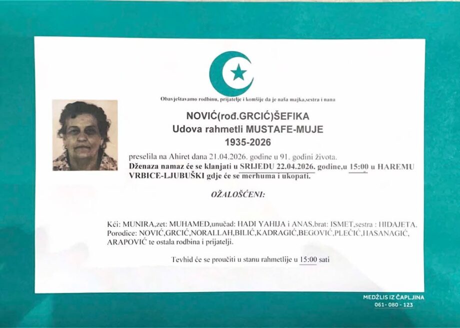 Smrtovnica Šefike Nović